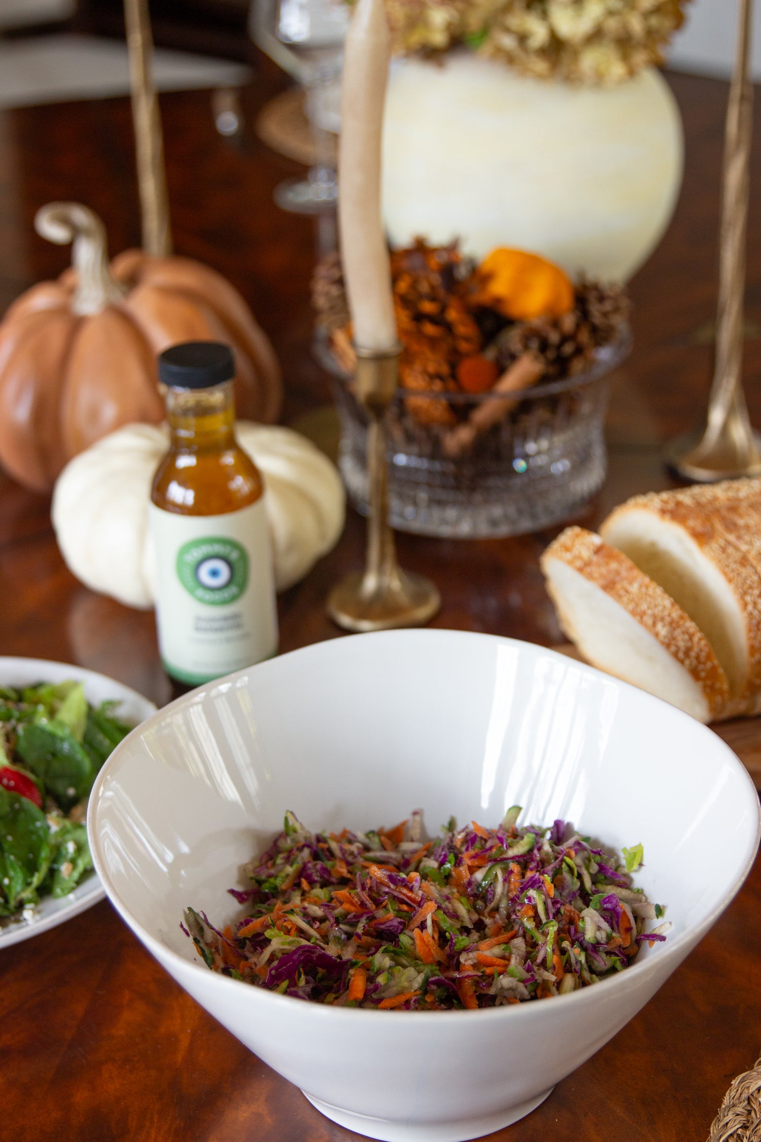 Shred all the ingredients in a bowl, mix with Tommy's Simple Greek, and enjoy!
